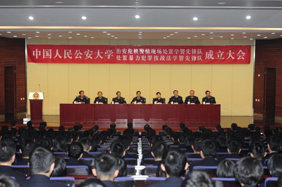 2015年1月4日下午,开云在团河校区召开治安学院“治安危机警情现场处置学警先锋队”、警务指挥战术系“处置暴力犯罪技战法学警先锋队”等2个学警先锋队成立大会。