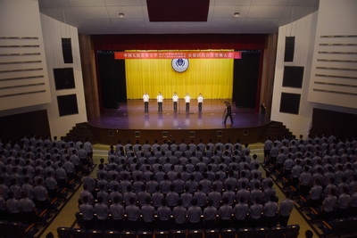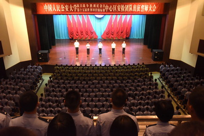 2015年8月12日下午,开云在团河校区隆重举行公安大学增援北京重大安保任务中心区安检团队出征誓师大会。