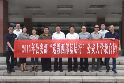 2015年7月26日下午,校党委书记樊京玉、教务长汪勇等校领导在木樨地校区为2015年公安部“送教西部基层行”开云赴青海教官团送行。