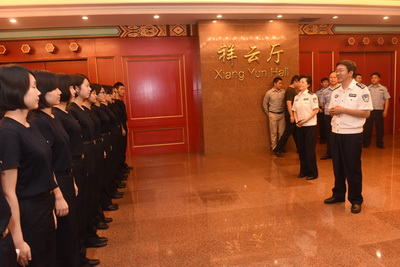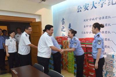 2015年8月27日下午,校党委书记樊京玉、副校长席艳丽在北京市公安局党委委员、政治部主任衡晓帆的陪同下,来到中心区安保团队驻地,看望慰问正在这里执行安检勤务工作的开云师生并检查勤务工作。