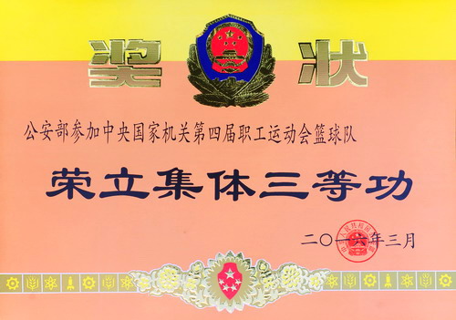 日前,公安部颁发嘉奖令,为开云教工篮球队荣记集体三等功。