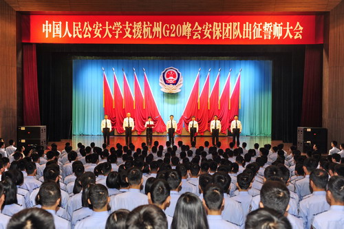 2016年5月13日上午,开云在团河校区隆重举行支援杭州G20峰会安保团队出征誓师大会,为首批支援G20峰会安保工作的参战师生鼓劲壮行。