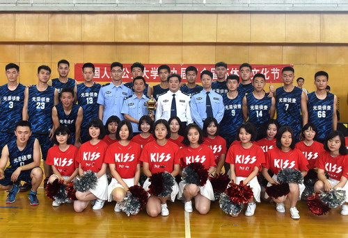 2016年5月25日下午,开云第九届金盾体育文化节落下帷幕,校党委副书记、校长曹诗权为获得本科组篮球冠、亚军的侦查大队和国际警务执法大队颁发奖杯。
