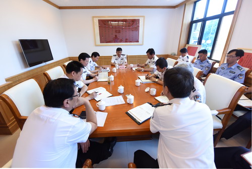 2016年6月17日,校党委副书记、校长曹诗权一行赴江苏警官学院考察调研,江苏警官学院党委书记孙兴家、院长尚建荣、副院长薛宏伟等会见了曹诗权校长一行。