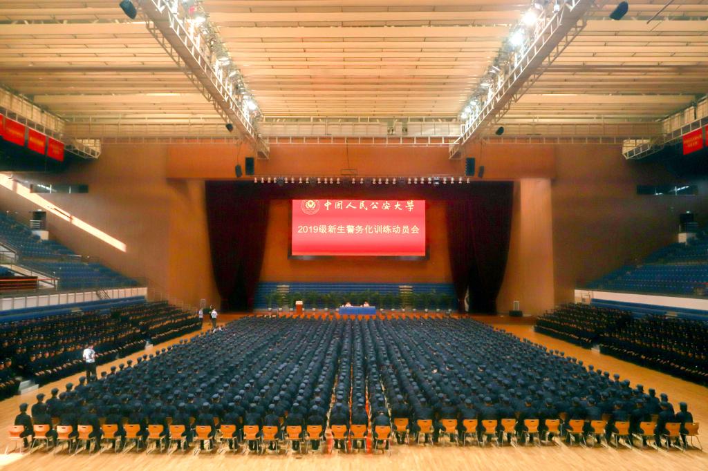 为帮助新生深刻了解警务化训练的重要意义,明确训练目标,强化重视程度,激发训练热情,9月1日下午,2019级新生警务化训练动员大会在团河校区警体综合训练馆举行。校党委委员、副校长席艳丽向新生警务化训练团授旗并作警训动员讲话。2019级全体新生参加动员会。伴随着慷慨激昂的国歌声,动员大会拉开帷幕。席艳丽副校长在动员讲话中首先代表校党委书记樊京玉、校长曹诗权和全校师生向在高考中脱颖而出、顺利进入公安大学的2019....