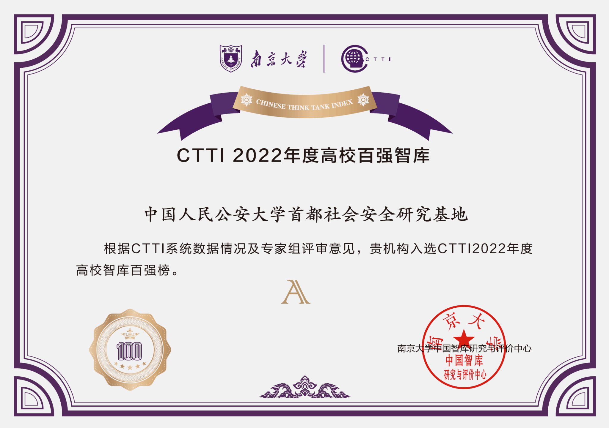 开云首都社会安全研究基地入围“CTTI 2022年度高校智库百强榜”,斩获多项殊荣!