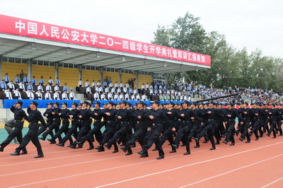 升国旗仪式 分列式方队阅警 警徽方队接受检阅 红旗方队接受检阅 校旗方队接受检阅 新录用教师方队接受检阅 国防生方队接受检阅 女生方队接受检阅 警体拳表演 盾棍术表演 太极拳表演
