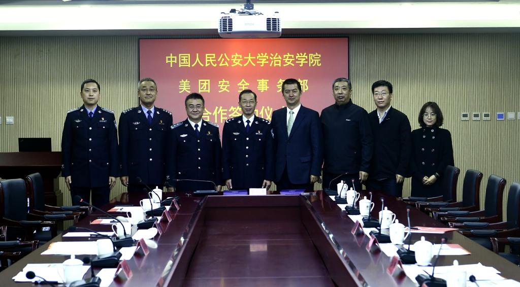为创新院企合作新模式,11月19日下午,治安学院与美团安全事务部在木樨地校区举行了合作签约仪式。校党委委员、副校长李克美出席仪式并讲话,美团安全事务部高级总监孙伟出席仪式并讲话。治安学院班子成员及教师代表、美团安全事务部有关同志参加仪式。