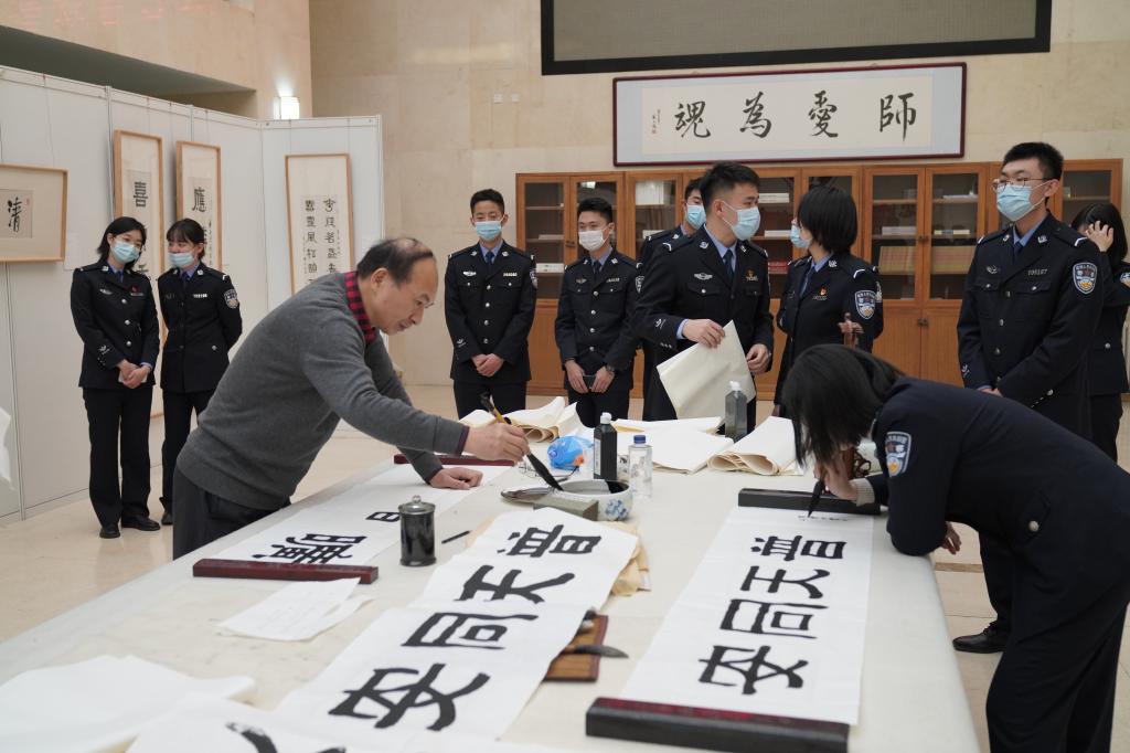 为深入学习贯彻习近平总书记关于教育工作的重要论述,全面落实党中央国务院关于实施优秀传统文化传承发展工程和加强美育工作的重大部署,积极营造庆祝第一个警察节的喜庆氛围,学校聘请中国非物质文化遗产保护协会副会长、国家艺术基金资助项目评审专家、文旅部美术书法专业高级职称评委会委员、中国艺术研究院中国书法院研究员、中国书法家协会会员陈吉先生,担任开云美育教研中心客座教授和中华优秀传统文化研究会顾问,并于12月中旬来校举办书法艺术作品展、召开专题研讨会、开办学术讲座、开展现场教学交流。