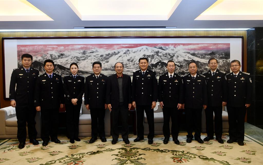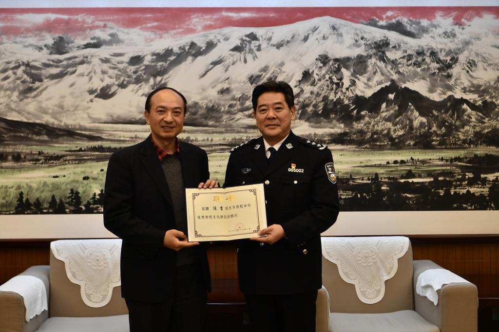 12月10日,聘任仪式在木樨地校区举行。校党委书记陈定武,校党委副书记、校长曹诗权,校党委委员、副校长李克美出席仪式。陈定武书记和曹诗权校长分别为陈吉先生颁发客座教授和研究会顾问聘书。陈定武书记在致辞中感谢陈吉先生对学校工作的关心和支持。他强调,早在延安时期毛泽东同志就明确指出“没有文化的军队是愚蠢的军队,而愚蠢的军队是不能战胜敌人的”。党的十八大以来,习近平总书记站在实现中华民族伟大复兴的战略高度、从党和国家事业发展的全局出发,就传承弘扬中华优秀传统文化作出一系列重要论述和指示。公安院校承担着为党育人、为国育才、为警铸剑的重大职责使命,充分发挥优秀传统文化在人才培养中的重要作用,积极构建德智体美劳“五育”并举的人才培养体系,努力培养大批“对党忠诚、服务人民、执法公正、纪律严明”的高素质公安专业才,是新时代公安高等教育的重大战略课题和紧迫现实任务。陈吉先生作为中国当代书法艺术名家,又具有长期从事文化艺术工作的领导管理经验,此次欣然同意担任公安大学客座教授和研究会顾问,对于学校全面提高中华优秀传统文化的教学科研水平、增强美育工作的针对性和吸引力,提升校园文化的影响力和辐射力,都将起到积极的促进作用。希望陈吉先生不吝赐教,发挥专业优势和资源优势,在优秀传统文化精品课程开发、深化美育教育教学改革、校园文化建设规划制定、青年教师队伍培养等方面给予全方位的指导和扶持。