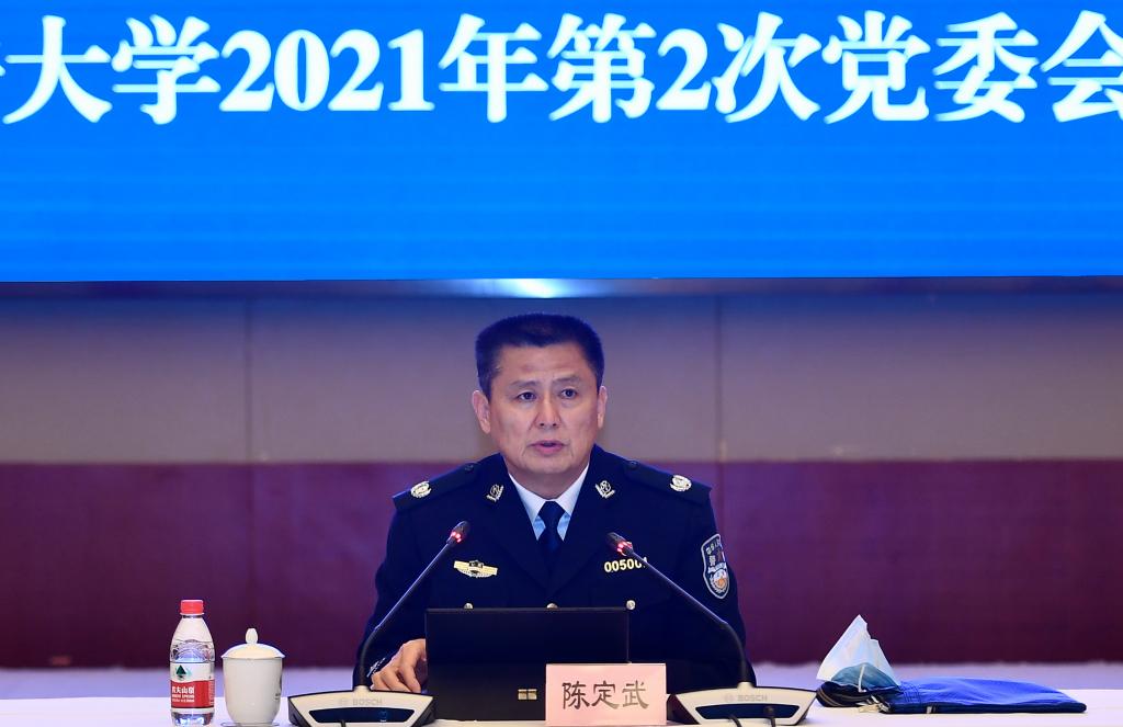 2021年1月21日上午,校党委书记陈定武主持召开学校党委扩大会议,认真传达学习习近平总书记就政法工作作出的重要指示精神和全国公安厅局长会议精神,研究部署学校贯彻落实工作,校党委成员出席会议并作学习交流,副局级干部、校属单位党政主要负责人列席会议。
