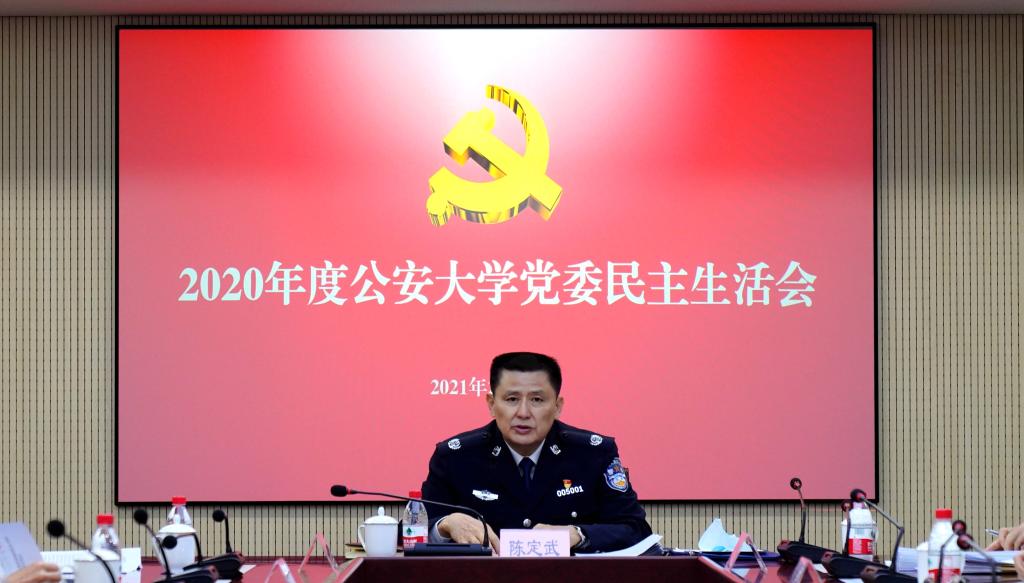 根据中纪委、中组部《关于认真开好2020年度县以上党和国家机关党员领导干部民主生活会的通知》精神,按照赵克志部长和部党委部署要求,2021年2月24日,校党委书记陈定武主持召开校级领导班子2020年度民主生活会。会上,党委班子成员紧扣学习贯彻习近平新时代中国特色社会主义思想这一主线,聚焦加强政治建设,提高政治判断力、政治领悟力、政治执行力,遵循“团结—批评—团结”的方针,围绕主题、突出重点,查摆问题、剖析根源,研究提出整改具体举措,达到了会议目的,取得了良好效果。公安部人事训练局、北京市委教育工委派员出席会议并作指导,全体校党委成员参加会议。