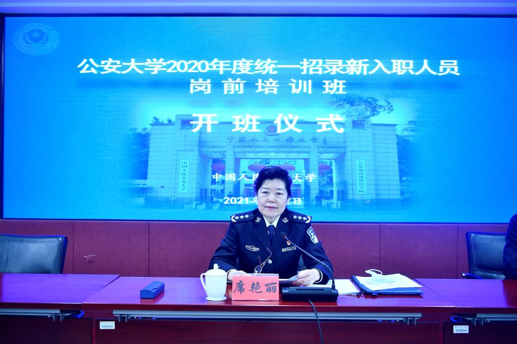 为认真贯彻落实“三严一看齐”准军事化建设标准,切实提升新入职人员的政治素质、纪律意识和业务能力,使其尽快进入工作角色、适应工作节奏,根据校党委的部署安排,2020年度统一招录新入职人员岗前培训班于3月2日在木樨地校区正式开班。校党委副书记席艳丽出席开班仪式,校属相关单位领导班子成员、统一招录新入职人员参加开班仪式。