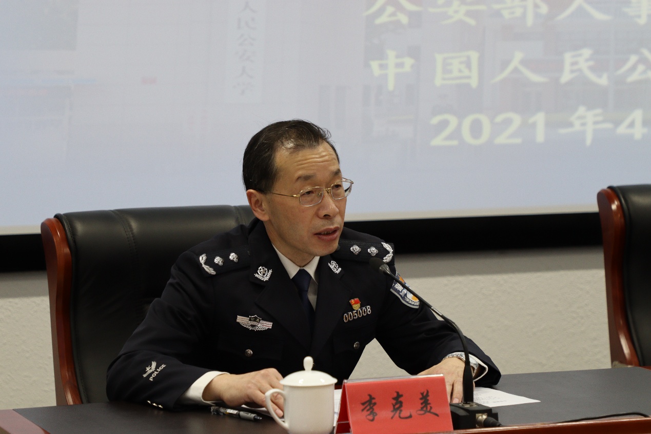 李克美副校长在致辞中对全体参训学员来校学习交流表示热烈欢迎,并简要介绍学校建校七十多年来的发展历程与办学成就。他指出,公安部统一招录面试工作事关公安人才选拔与队伍建设大局,面试考官责任重大,使命光荣,全体参训学员要珍惜培训学习机会,切实增强“选贤”能力,提升“识才”本领,努力为公安部机关及直属单位选拔更多高素质专门人才。