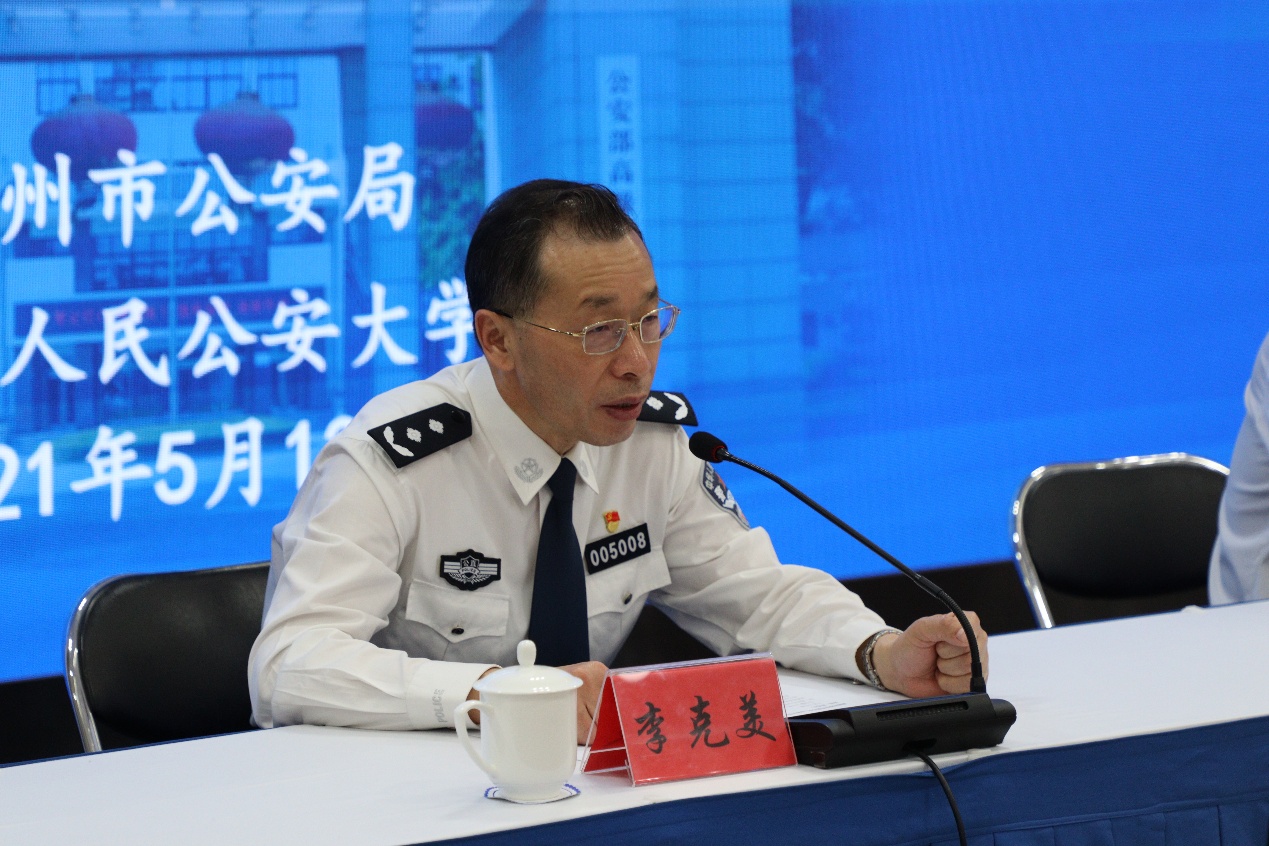 李克美副校长对全体参训学员来校学习表示热烈欢迎,并简要介绍公安大学七十多年来的发展历程与办学成就。他指出,提升基层社会治理水平,是实现国家治理体系和治理能力现代化的重要环节,举办本次专题培训班是德州市公安局落实全国公安工作会议精神与公安部关于“大抓基层、大抓基础”决策部署的重要举措,对于增强基层实力、激发基层活力、提升基层战斗力必将起到重要推进作用。他希望全体学员珍惜学习机会,认真学习、深入交流,提升捍卫政治安全、维护社会安定、保障人民安宁的能力水平,更好地服务更高水平的平安中国、法治中国建设。