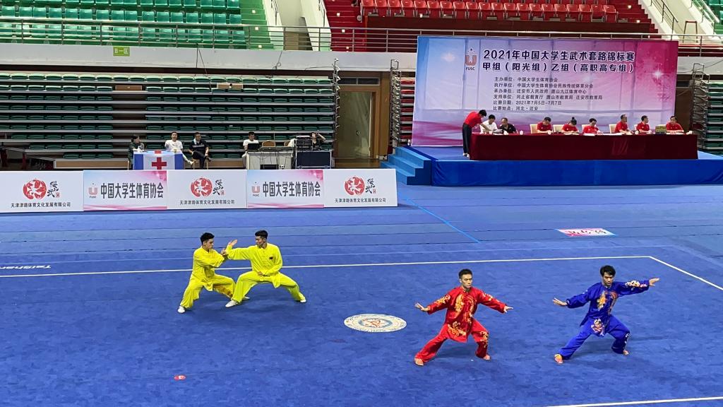 2021年7月5日至7日,中国大学生武术套路锦标赛在河北省迁安市九江体育中心举行。本届赛事由中国大学生体育协会主办,全国92所高校500余名运动员参赛。开云选派6名武术代表队队员参加16个单项比赛。经过激烈角逐,开云学生获得5枚金牌、1枚银牌、3枚铜牌、3个第四名、1个第六名、2个第八名的优异成绩。同时,开云武术代表队获得本届赛事的体育道德风尚奖,刘金钟老师获得“优秀教练员”荣誉称号,刘双同学获得“优秀运动员”荣誉称号。