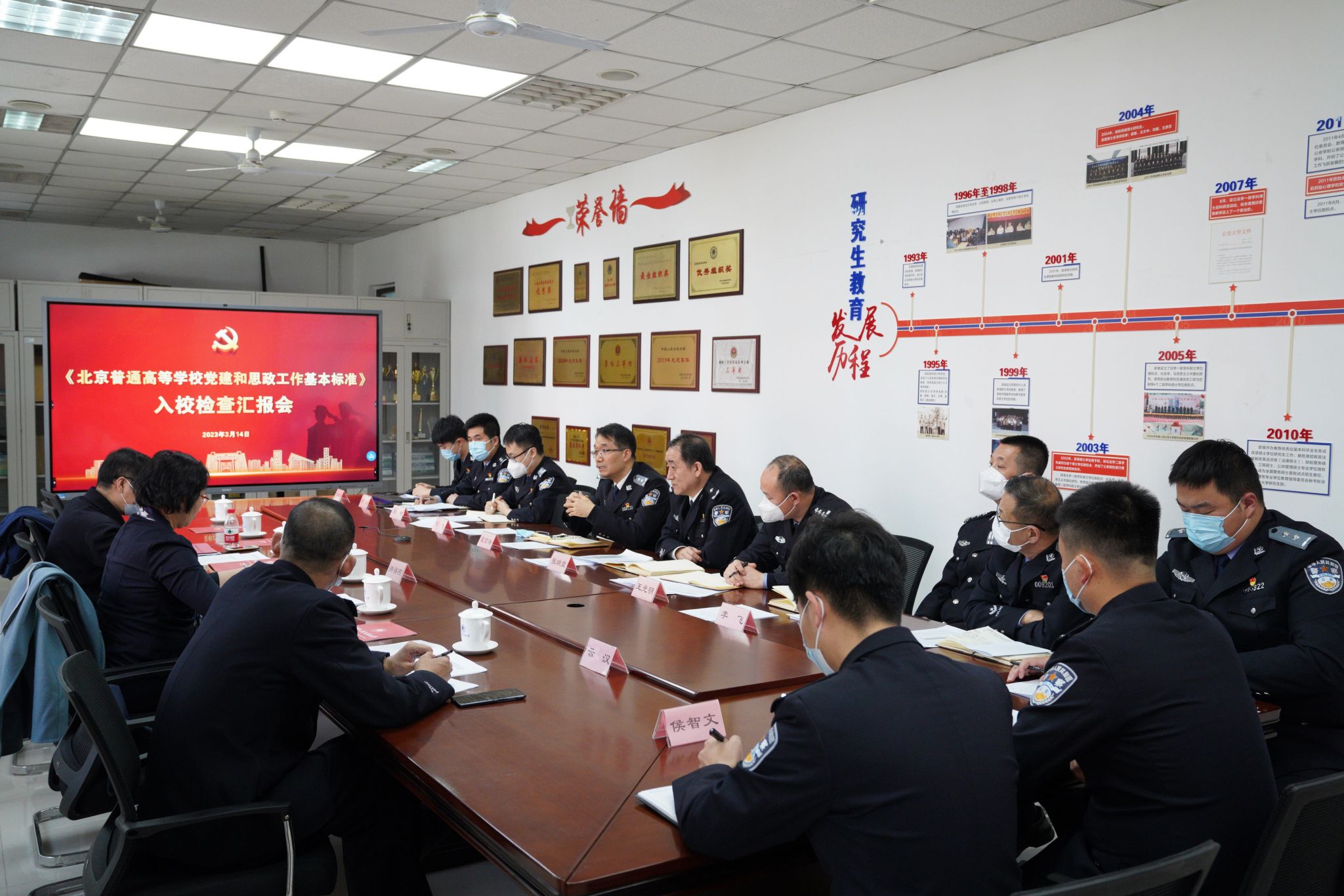 按照北京市委有关部署及市委教育工委统一安排,3月14日,《北京高校党建和思想政治工作基本标准》(以下简称《基本标准》)检查组到学校木樨地校区开展入校集中检查,通过听取党委工作汇报、查阅支撑材料、召开座谈会、实地检查走访等形式,全面深入调研检查学校党建和思想政治工作情况。