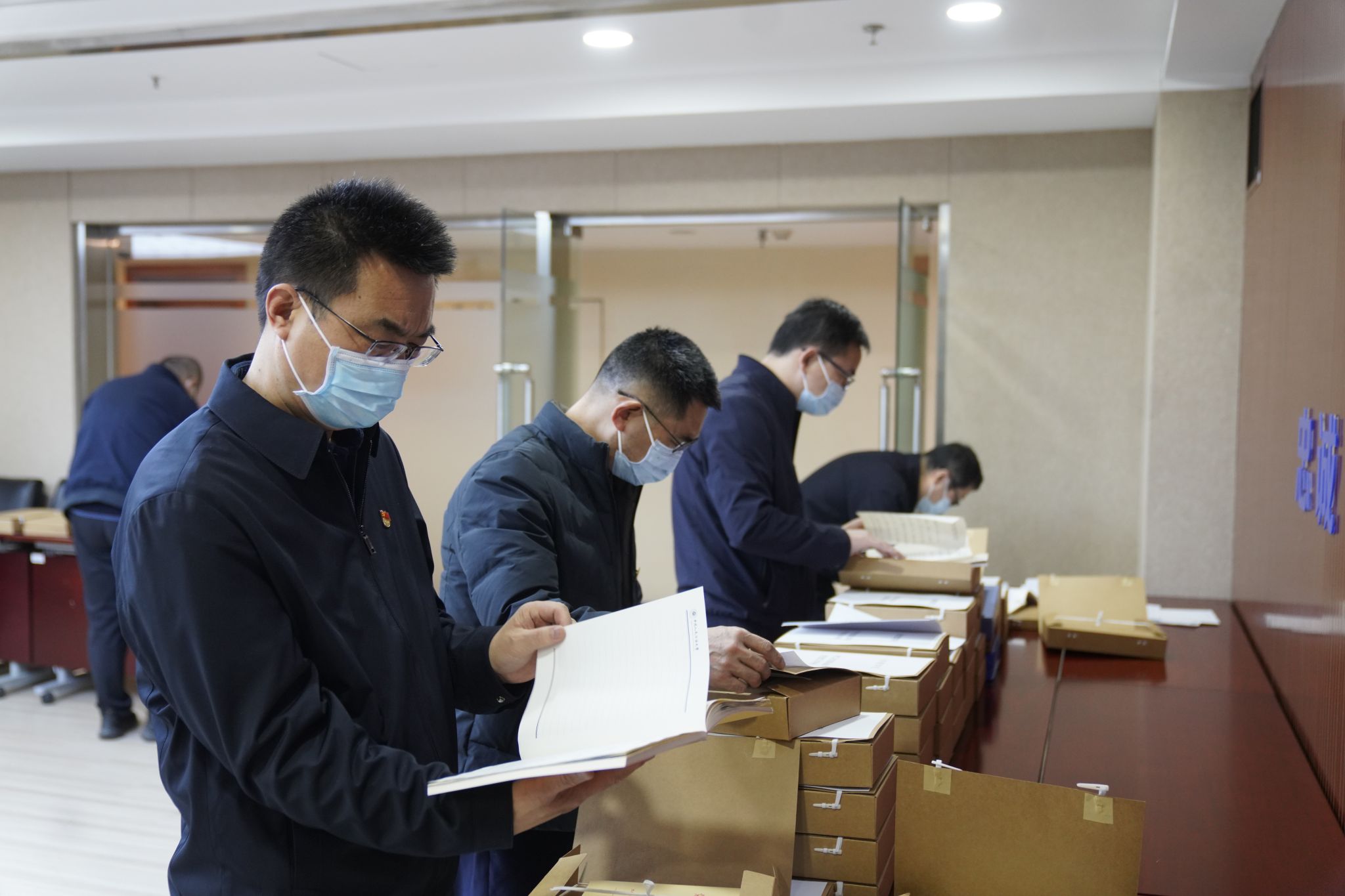 检查组查阅学校各类相关材料和工作台账