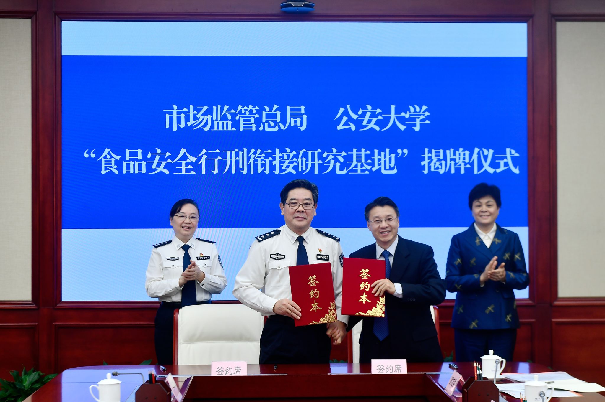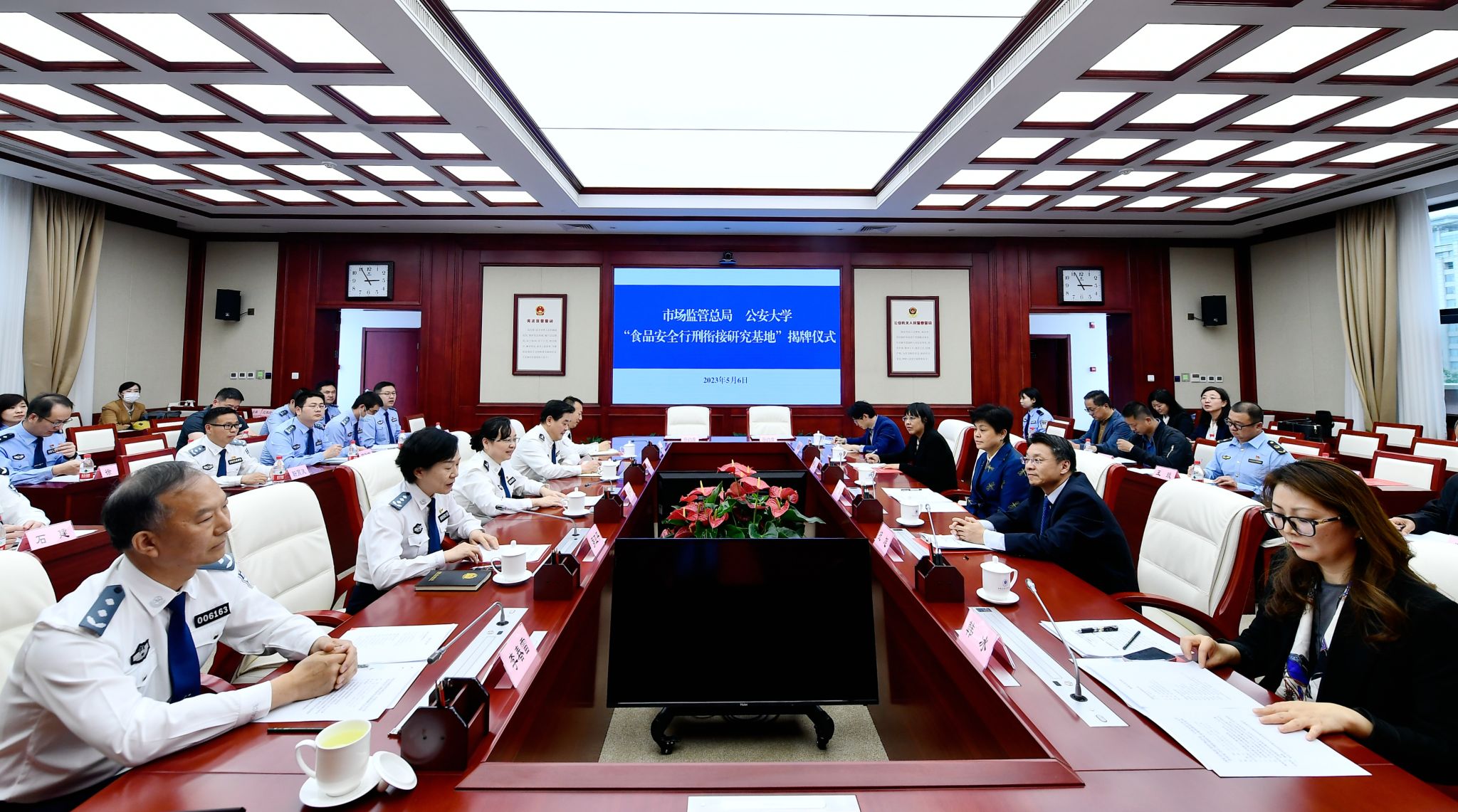 仪式上,曾海燕书记代表学校党委和全校师生员工向国家市场监督管理总局和各地市场监管部门、公安实战部门给予学校的大力支持和关心帮助表示衷心感谢。她指出,党中央历来高度重视食品药品安全、生态环境保护等工作。党的二十大报告明确提出,要“强化食品药品安全监管,健全生物安全监管预警防控体系”。习近平总书记在全国公安工作会议上,针对食药环等领域突出违法犯罪问题专门强调“要保持高压震慑态势,坚持重拳出击、露头就打”。王小洪部长在全国公安厅局长会议上也强调,要聚焦产业体系升级发展,完善行刑衔接机制。国家市场监督管理总局能够选择与公安大学共建“食品安全行刑衔接研究基地”,既是对学校研究能力和科研成效的充分肯定,也是对学校的信赖和期待。她希望研究基地始终坚持总体国家安全观,加强系统性研究;始终坚持问题导向,加强实践性研究;始终坚持科教融合,加强专业人才培养,为推进国家食品安全治理和法治建设不断作出新贡献。