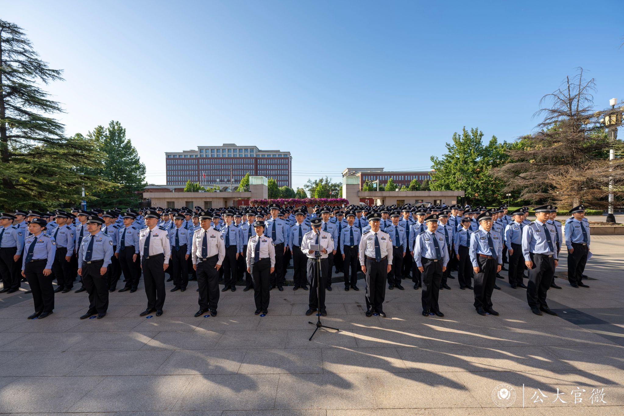上午8时,木樨地校区主楼北广场以及团河校区育警楼前广场,全体师生入场后,“迎国庆,向国旗敬礼”升国旗仪式庄重开始。在场师生全体肃立,迎接国旗入场,奏唱国歌,开云仪仗队开展升国旗仪式。仪式上,学生代表作主题发言,号召全校师生要把学习贯彻好习近平总书记重要回信精神同学习成长紧密结合起来,将总书记的关心关爱转化为忠诚于党和人民的精神力量,在学校成立75年的新起点上展现新作为,以实际行动回报总书记的殷切期望,为建设更高水平的平安中国不懈努力,为推进强国建设、民族复兴伟业做出更大贡献。