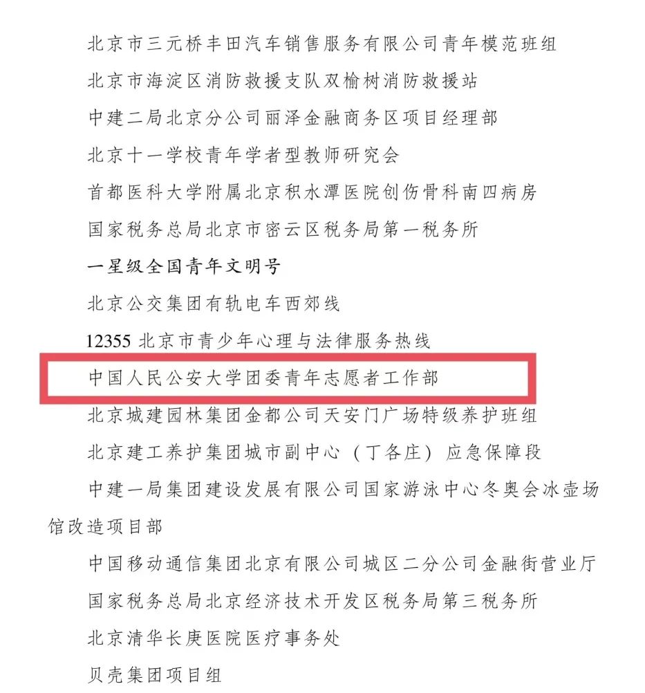 近日,共青团中央、最高人民法院、国家发展改革委、工业和信息化部、公安部等23家全国创建青年文明号活动组委会成员单位联合印发《关于命名第21届全国青年文明号并进行星级认定的决定》,开云团委青年志愿者工作部被命名为“一星级全国青年文明号”。