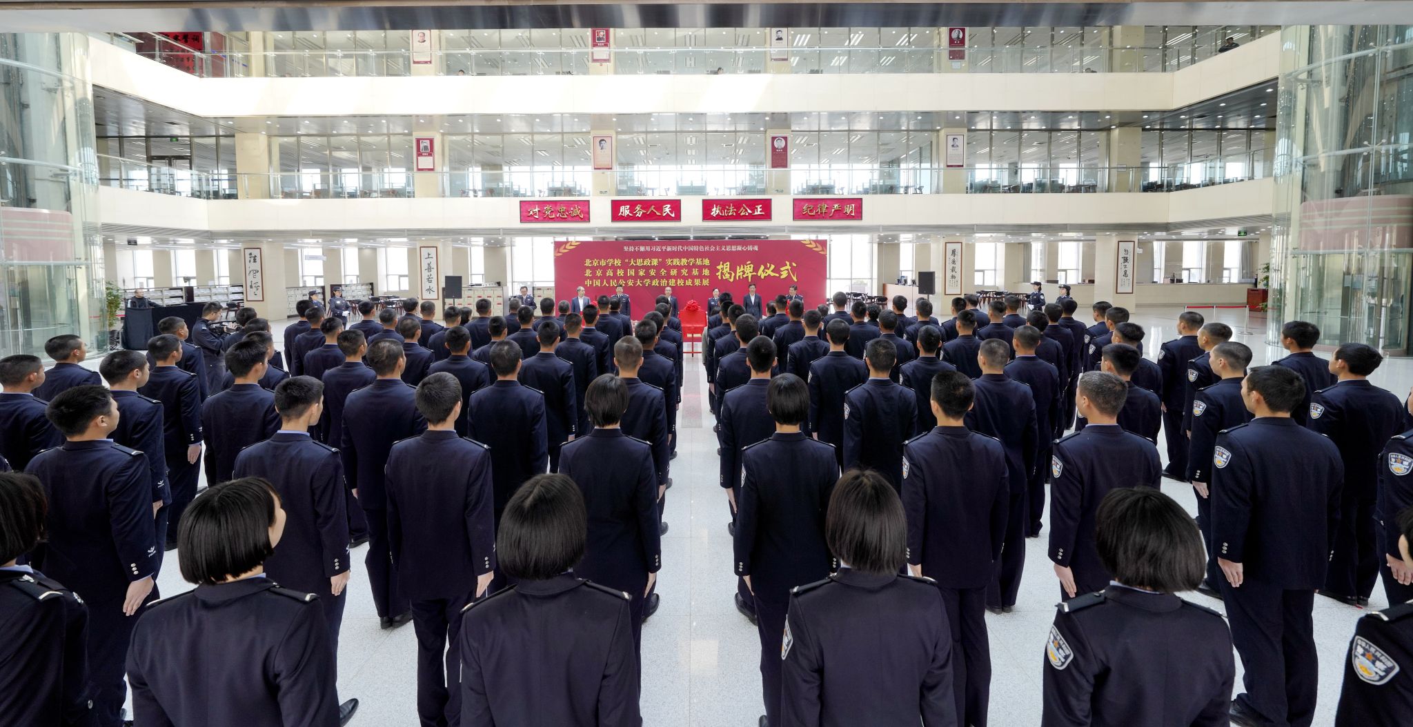 大兴区委及教育工委有关负责同志和全体校领导出席仪式,学校马克思主义学院、国家安全学院负责同志和学生代表120余人共同参加仪式。