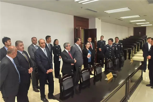 在曹诗权校长陪同下,约旦客人参观了开云团河校区图书馆、警务实战训练馆、警务实战模拟训练街区等教育训练设施,并观摩了学生正在进行的警务技能训练课程。随团来访的有约旦驻华大使叶海亚·卡拉莱、总局办公室主任卡法温准将等。开云进修部、学生工作处、外事办公室、警体战训学院等有关部门负责人参加了会见。(外事办)