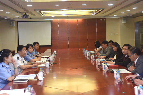 2016年9月19日,以陈明书院长为团长的越南公安部公安科学与战略研究院代表团一行8人受邀来校访问交流。校党委副书记、校长曹诗权,校党委委员、副校长李健和在木樨地校区会见了代表团全体成员,公安部公安发展战略研究所执行所长田全华以及学科建设与发展规划处、科研处、外事办公室、公安民警教育训练研究中心等单位负责人参加了会见。