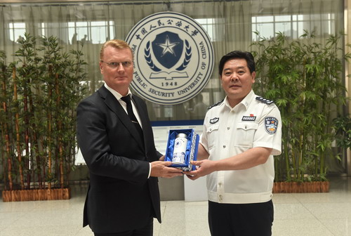 2016年9月21日下午,芬兰国家警察总局副总局长苏睿年先生率团一行4人专程来校访问交流。校党委副书记、校长曹诗权,校党委委员、副校长李健和会见了芬兰客人。