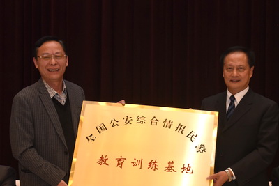 黄祖跃政委、公安部情报中心黄洪主任为全国公安综合情报民警教育训练基地揭牌