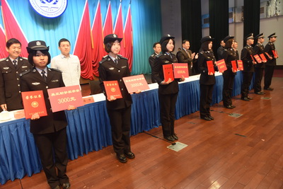 与会领导为获奖学生颁发证书和奖金