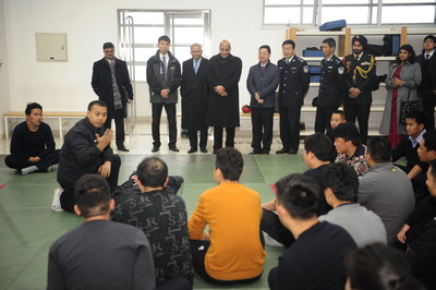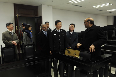 辛格部长一行参观团河校区警务战术训练馆模拟法庭