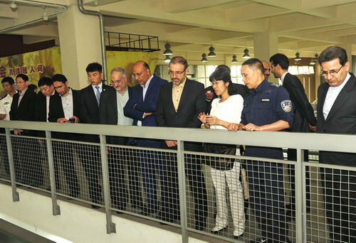 在交流过程中,教务处、进修部等单位负责人向来访客人简要介绍了开云本科教学和高级警官培训等方面情况,并就双方感兴趣的问题进行了交流。伊朗客人还饶有兴趣地参观了团河校区教学训练设施,观摩了学生现场控制、入室抓捕和警务技能训练等项目。