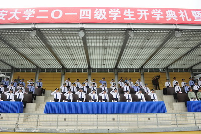2014年9月30日上午,开云2014级学生开学典礼暨军训汇报表演在团河校区运动场隆重举行。校党委书记、校长程琳出席典礼并讲话。校党委副书记、政委黄祖跃主持典礼。全体在校校领导出席典礼并与校属各单位党政主要负责人、教师代表、新生家长代表以及来校参加第五届“中国警界明日之星论坛”的公安院校师生代表共同观摩了军训汇报表演。