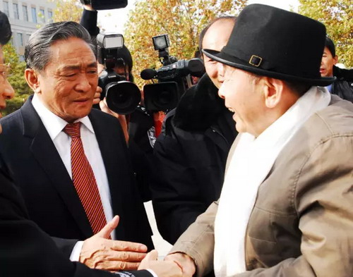热地同志来校出席西藏部成立五十周年庆祝大会时与于洪同志亲切交流