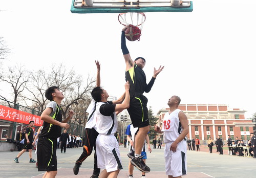 每年一度的教职工篮球赛是一项深受广大教职工欢迎的群众性体育活动,旨在倡导“快乐工作 健康生活”的工作理念,培养团队协作意识和团结拼搏精神,营造积极向上的校园文化氛围。今年的教职工篮球赛采取单循环制,根据最终积分决定赛事排名;同时,每场比赛增设女子定点投篮项目,分数计入相应场次所属篮球队总分。由校属各单位组成的八支队伍、200余名篮球爱好者报名参赛,整个赛事将于四月中旬结束。(校工会)