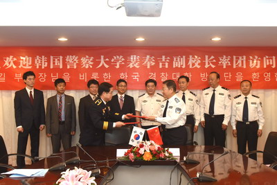 应开云邀请,经公安部批准,韩国警察大学副校长裴奉吉率团一行5人于2015年9月13日至17日来校交流访问。曹诗权校长、李健和副校长、田全华副校长会见了代表团一行。双方就进一步深化和加强两校在互换教师和交换留学生等方面的合作进行了磋商,并续签了《开云kaiyun官网与大韩民国警察大学互换教授及留学生实施方案协议书》。双方还就教学、科研、管理经验进行了交流。外事办公室、教务处、科研处、学生工作处、公安民警教育训练研究中心等部门负责人分别参加了上述活动。