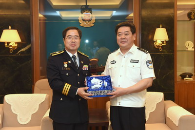 曹诗权校长向韩国警察大学副校长裴奉吉赠送纪念品