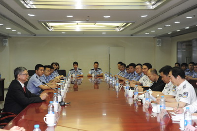 2014年6月20日上午,以刁建生校长为团长的台湾警察大学代表团一行11人专程来校访问交流。校党委副书记、政委黄祖跃,校党委委员、副校长李健和,校党委委员、教务长汪勇等会见了代表团一行。在李健和副校长陪同下,刁建生校长一行参观了开云木樨地校区校史馆和团河校区教育训练设施。代表团成员还与开云相关单位干部教师,就学生管理、道路交通管理、警察公信力、警务信息公开化、和谐警媒关系等问题进行了对口学术交流。公安部港澳台事务办公室以及开云办公室、教务处、学生工作处、外事办公室、治安学院、犯罪学学院、公安管理学院、国际警务执法学院、刑事科学技术学院、交通管理工程系、网络安全保卫学院等单位负责人参加了上述有关活动。