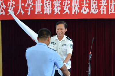 2015年8月17日下午,开云在木樨地校区隆重举行公安大学增援北京重大安保任务世锦赛安保志愿者团队出征誓师大会。校党委副书记黄祖跃出席会议,为安保团队授旗并讲话。校党委委员、副校长席艳丽主持会议。