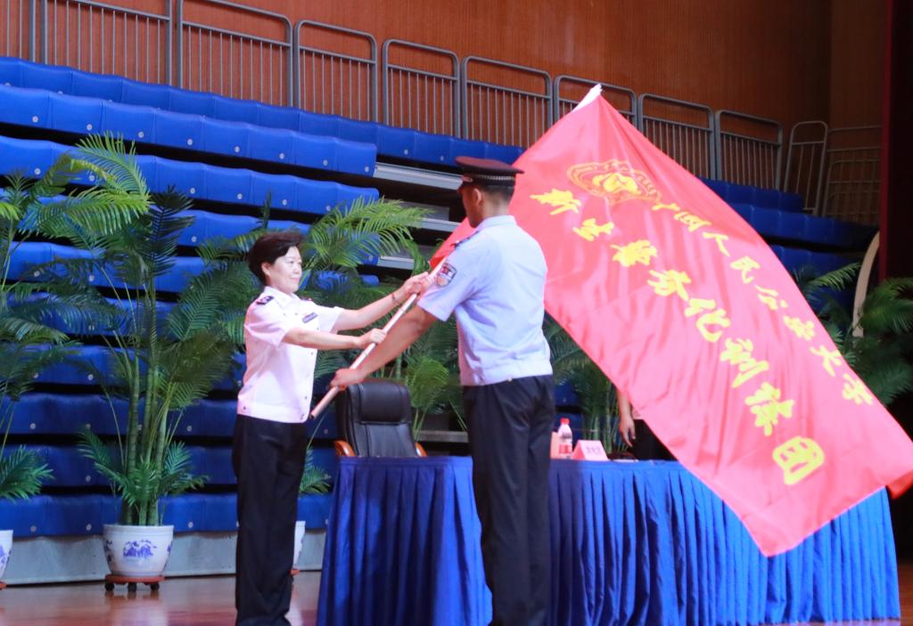 为帮助新生深刻了解警务化训练的重要意义,明确训练目标,强化重视程度,激发训练热情,9月2日上午,2018年新生警务化训练动员大会在团河校区警体综合训练馆举行。校党委委员、副校长席艳丽向新生警务化训练团授旗并作军训动员讲话。2018级全体新生参加大会。