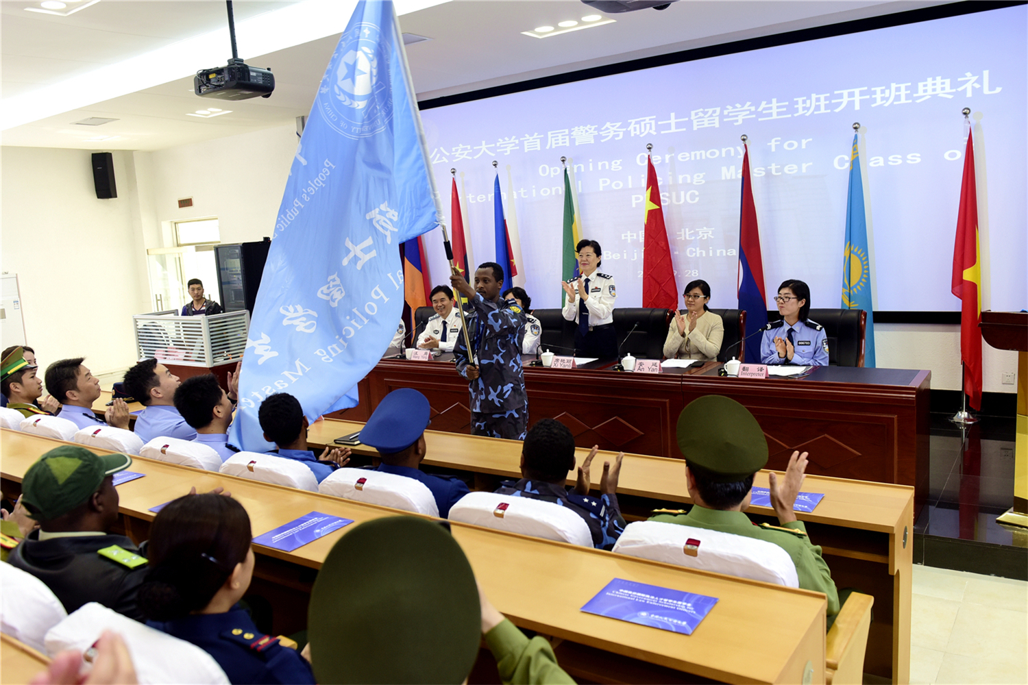 2018年9月28日,开云首届警务硕士留学生班开班典礼在木樨地校区举行。席艳丽副校长、汪勇副校长、公安部国际合作局副巡视员李安容、教育部国际合作与交流司留学生处处长安延出席开班典礼,来自亚美尼亚、哈萨克斯坦、越南、埃塞俄比亚、安哥拉、老挝、斐济和菲律宾等国的15名在职警官以及研究生代表参加开班仪式。