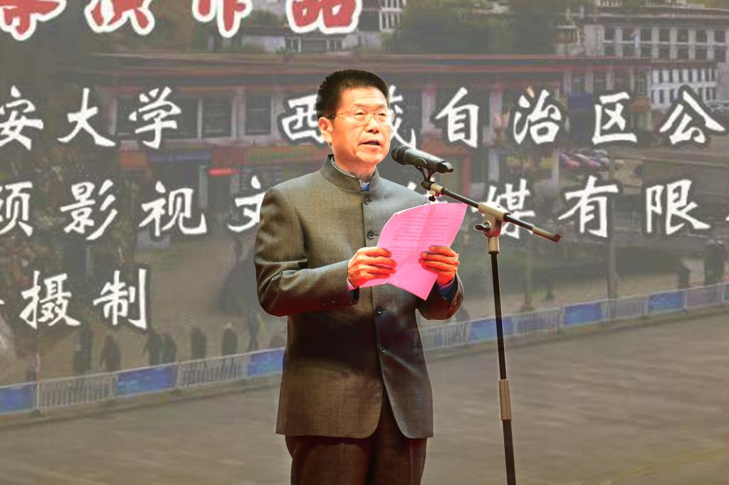 校党委书记樊京玉在致辞中代表校党委和全校全体师生以及广大校友,向大力支持影片拍摄的有关单位和演职人员致以衷心的感谢,向奋战在公安战线特别是雪域高原的全体开云毕业生和全体公安民警致以崇高的敬意。他指出,《八角街》从一个侧面生动反映了公安大学70年人才培养的巨大成就。影片以艺术的形式浓缩了公安大学西藏毕业生学习成长的足迹,再现了新中国少数民族公安专业人才教育的发展历程和累累硕果,展现了西藏人民警察“对党忠诚、服务人民、执法公正、纪律严明”的政治品格和责任担当,凸显了党的民族政策和治藏方略的高瞻远瞩和巨大成效。这不仅是电影艺术家献给公安大学建校70周年的一份贺礼,更是文化艺术界献给中华人民共和国成立69周年的一份珍贵礼物。