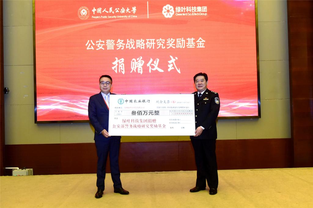 绿叶科技集团向公安部公安发展战略研究所捐赠“公安警务战略研究奖励基金”