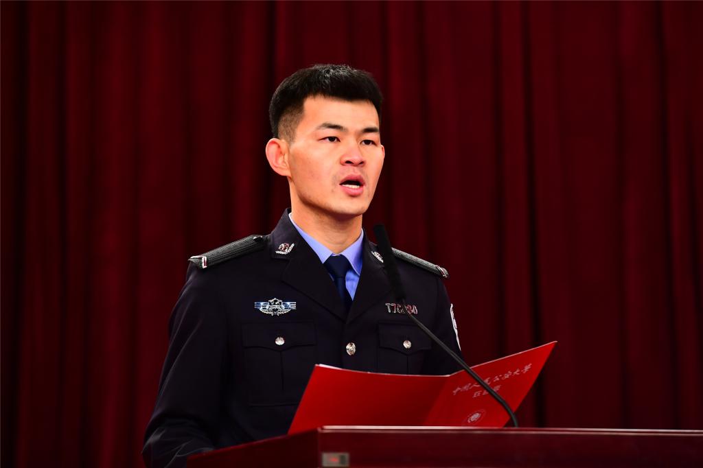 曹诗权校长在毕业典礼上讲话,代表校党委和全校师生员工向全体毕业学生圆满完成学业表示热烈祝贺,向为改革试点班付出辛勤劳动和心血的教职工表示诚挚问候。他指出,改革试点班学生怀着立志从警的初心来到公安大学,在这里实现了从一名普通社会青年到共和国预备警官的成长蜕变。在公安大学的两年时光中,同学们的个人成长与国家发展、社会进步、公安改革、学校建设同向同行,丰富多彩。他勉励同学们不忘初心,牢记使命。树立远大志向,报效国家人民,用实际行动为母校争光、为警徽添彩。他对全体毕业生提出三点希望,一是希望同学们始终坚持以习近平新时代中国特色社会主义思想武装头脑,在用科学理论指导实践、积极投身公安工作上下功夫。二是希望同学们把“四句话、十六字”总要求作为立志从警的座右铭,贯穿到警察职业生涯的全过程。三是希望同学们牢固树立“排头兵”意识,在公安实践的大熔炉中不断学习进步。