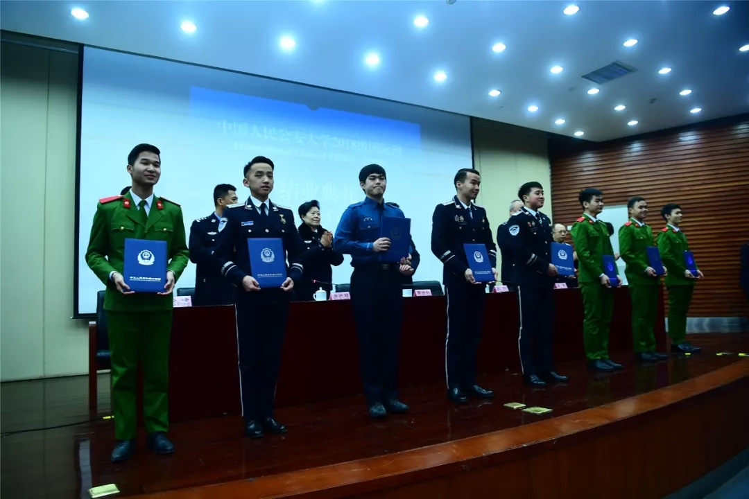 校党委副书记、校长曹诗权和公安部国际合作局副巡视员谈钧在典礼上致辞,校党委委员、副校长席艳丽主持典礼。与会领导向国际班学生颁发结业证书及优秀学员荣誉证书。际班教官、侦查与反恐怖学院教师张士豪和越南人民警察学院学生黎忠勇分别作为师生代表发言。