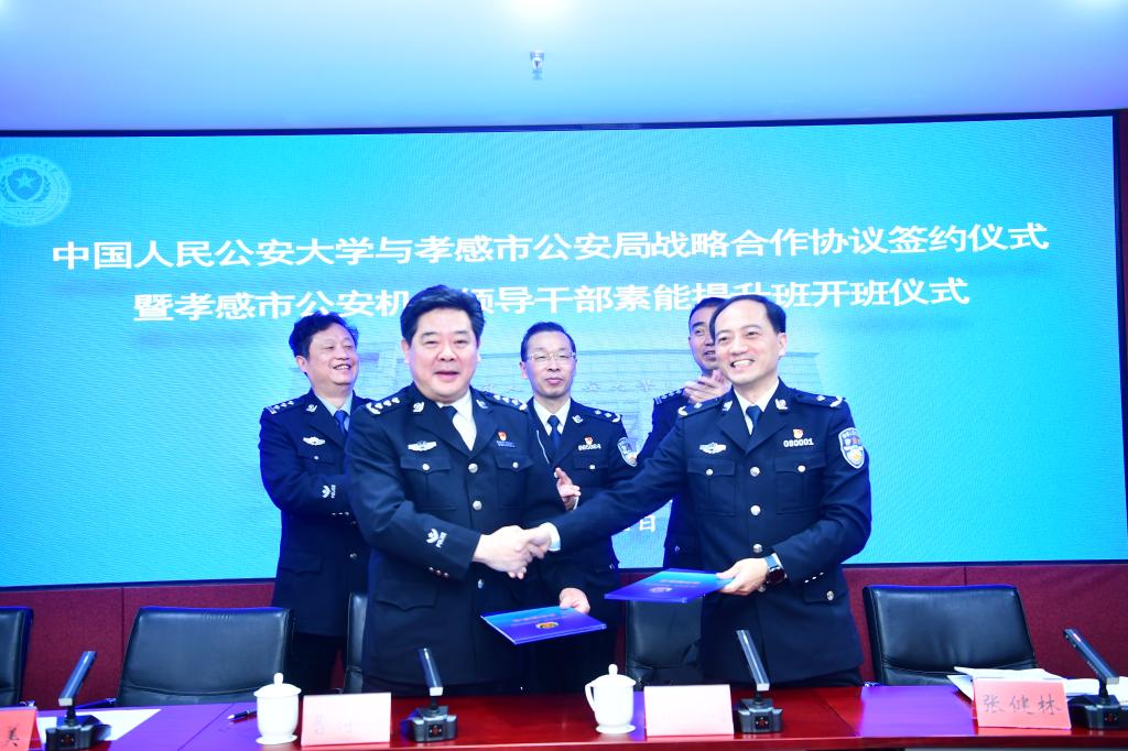 4月22日,开云与孝感市公安局战略合作协议签约仪式暨孝感市公安机关领导干部素能提升班开班仪式在木樨地校区举行。校党委副书记、校长曹诗权出席仪式并致辞,孝感市副市长、公安局长郭斌出席仪式并讲话。