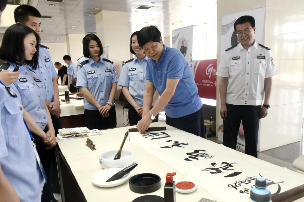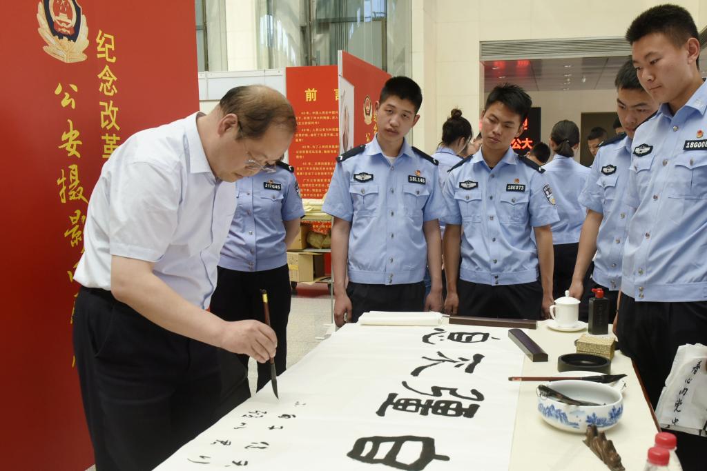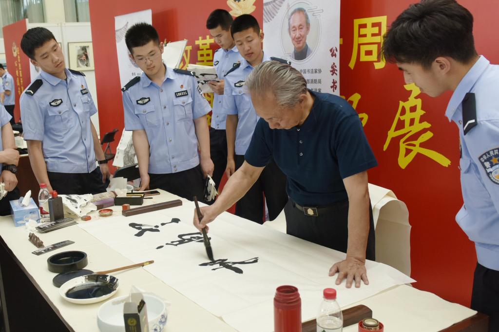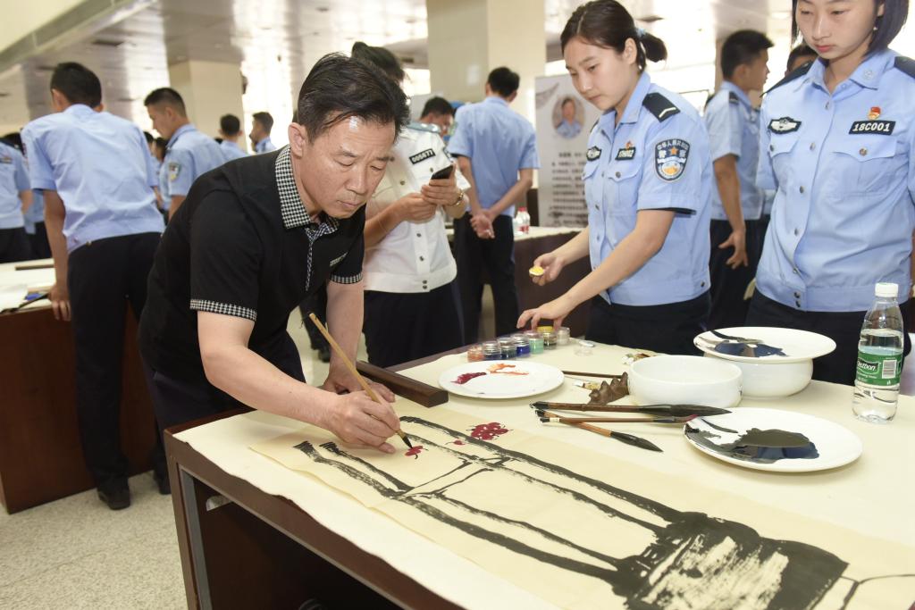 为深入推进“践行新使命、忠诚保大庆”实践活动,大力弘扬中华优秀传统文化、努力培养德智体美劳全面发展的公安事业合格接班人,2019年5月29日,由全国公安文联和公安大学联合举办的“公安书画名家进开云”活动正式启动。以全国公安文联副主席、美协主席、中国美协理事李冬为团长的12名享誉公安系统的书画家通过参观教学训练设施、举办专题学术讲座、开展书画交流笔会、为青年优秀教师画像、座谈校园文化建设等活动,与开云师生进行了一场面对面的艺术“对话”。