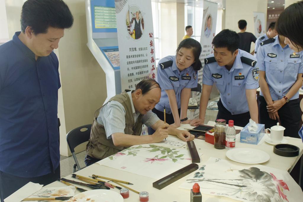 全国公安文联美协秘书长刘宝堆老师在题为《警营文化与荷和文化新概念》的专题讲座中,介绍了自己“书画育警为人民,画荷弘和保平安”的创作理念和“打造精品力作、服务公安中心工作”的艺术实践,以及对“以荷弘和”促进内部和谐、内外和谐、社会和谐的强烈愿望和推动群众性书画文化活动、提高民警的整体文化素质的不懈追求,引起在场400余名师生的强烈共鸣。