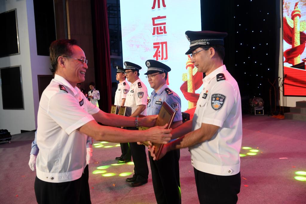 校党委副书记黄祖跃为在警容警姿队列会操比赛中获奖单位颁发奖状
